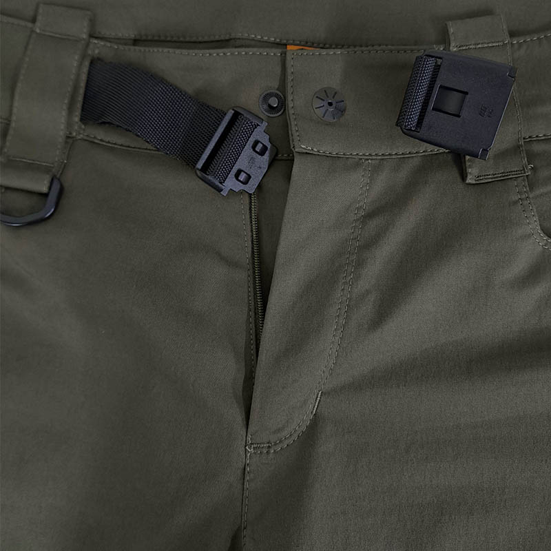 Брюки с регулируемым вшитым ремнем, с широкими шлевками под армейский ремень. Отличительной особенностью брюк является наличие петелек для подтяжек. Гульфик застегивается на молнию и на аккуратную, изящную и не бросающаяся в глаза крепкую потайную кнопку. Также на брюках предусмотрен карабин полукольцо LD-E YKK для крепления ключей или другого снаряжения.