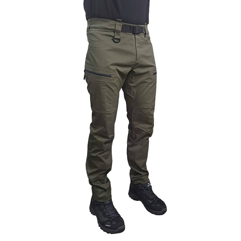 Брюки с регулируемым вшитым ремнем, с широкими шлевками под армейский ремень. Отличительной особенностью брюк является наличие петелек для подтяжек. Гульфик застегивается на молнию и на аккуратную, изящную и не бросающаяся в глаза крепкую потайную кнопку. Также на брюках предусмотрен карабин полукольцо LD-E YKK для крепления ключей или другого снаряжения.