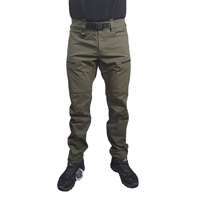 Брюки с регулируемым вшитым ремнем, с широкими шлевками под армейский ремень. Отличительной особенностью брюк является наличие петелек для подтяжек. Гульфик застегивается на молнию и на аккуратную, изящную и не бросающаяся в глаза крепкую потайную кнопку. Также на брюках предусмотрен карабин полукольцо LD-E YKK для крепления ключей или другого снаряжения.