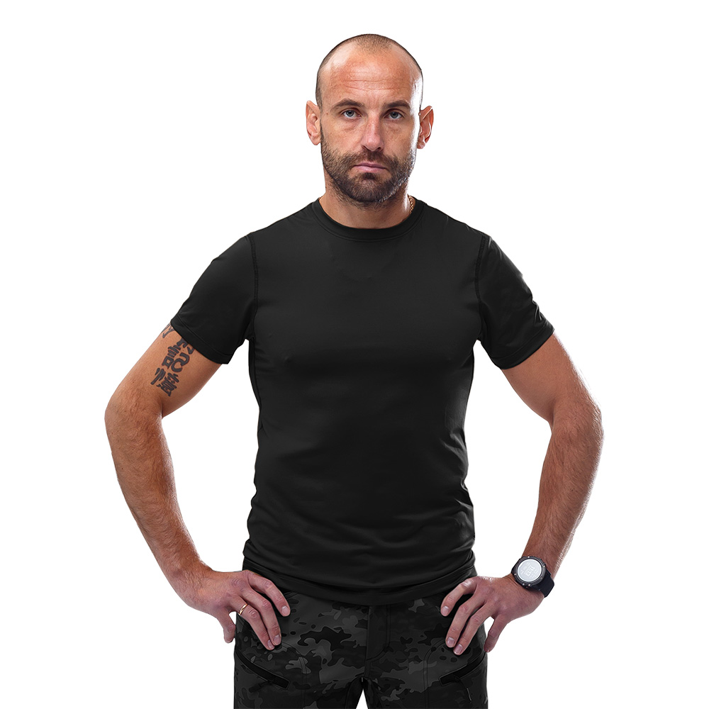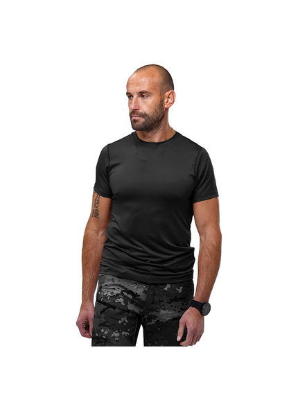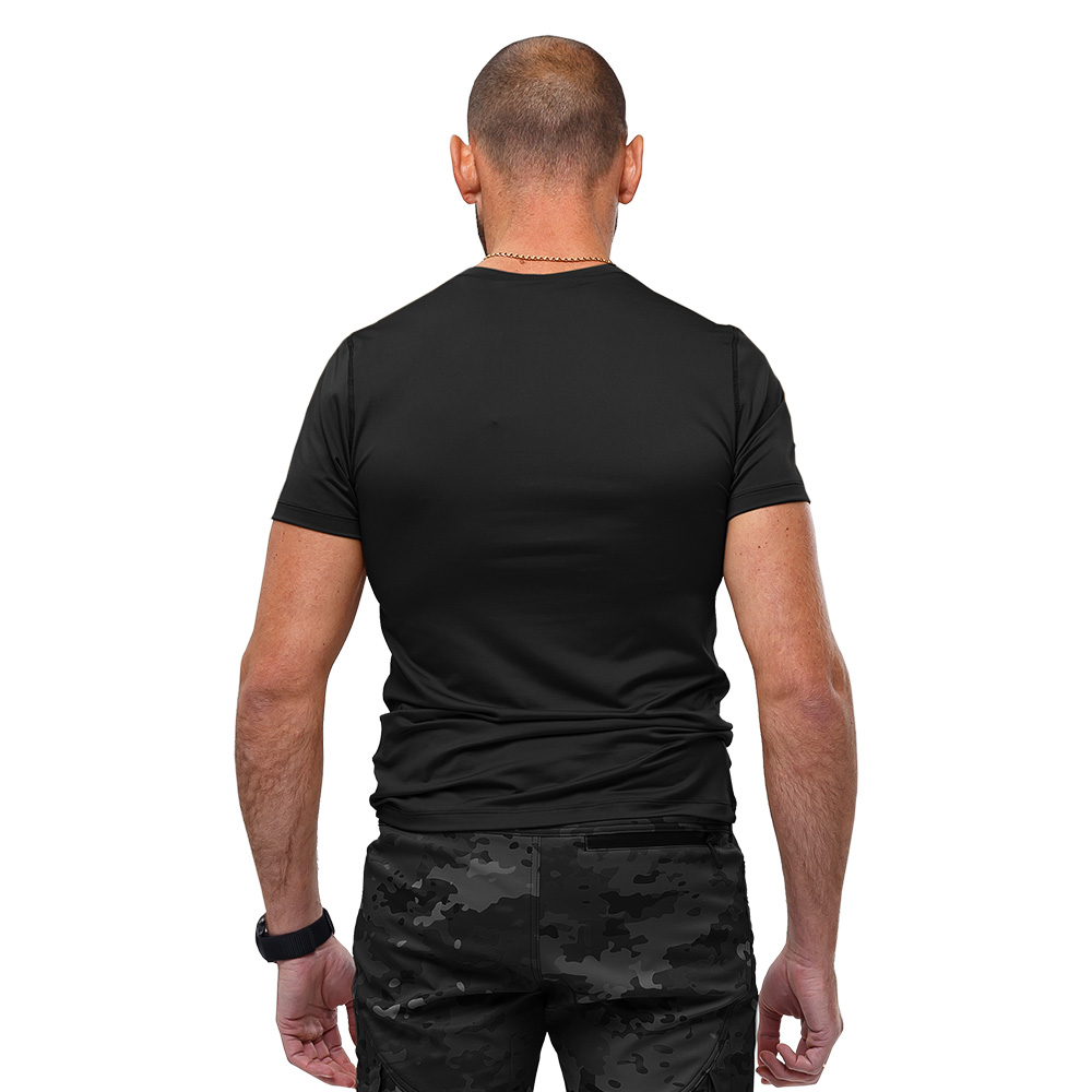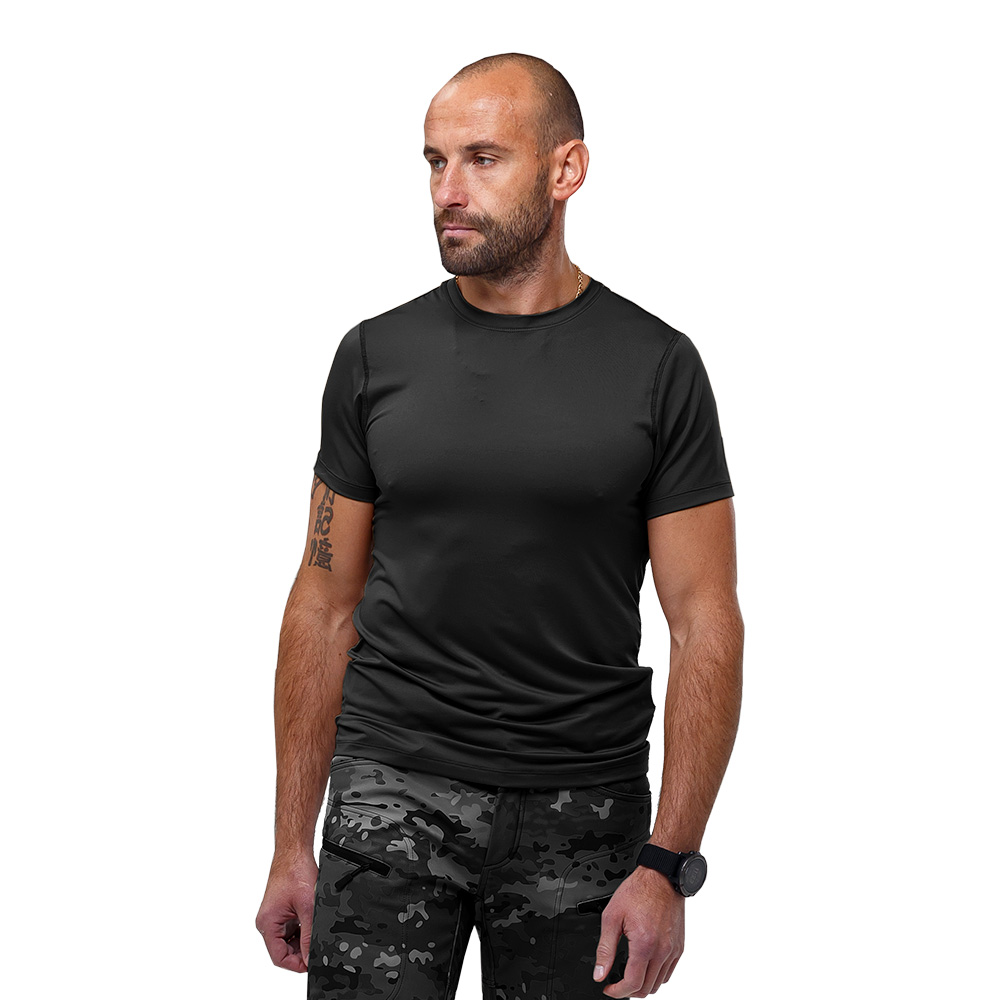 Легкая и удобная футболка Cross Black станет отличным вариантом для армейских и военизированных подразделений, для активного отдыха, спортивных тренировок и повседневного использования. Изделие будет хорошо смотреться не только со спортивной одеждой, но и тактической. Футболка изготовлена из материала CoolPass Single Jersey с антибактериальной пропиткой (100 % полиэстер, плотностью 130 г/м2). Волокна COOLPASS® впитывают влагу от тела, распределяют ее на большую площадь, в результате чего осуществляется самое быстрое ее испарение и обладает хорошей воздухопроницаемостью. Ткань обладает максимально тонким и эластичным плетением, благодаря чему практически не ощущается на теле.