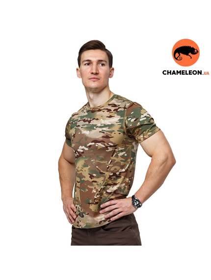 Легкая и удобная тактическая военная футболка мужская Cross Multicam станет отличным вариантом для армейских и военизированных подразделений, для активного отдыха, спортивных тренировок и повседневного использования. Изделие будет хорошо смотреться не только со спортивной одеждой, но и тактической. Футболка изготовлена из материала CoolPass Single Jersey с антибактериальной пропиткой (100 % полиэстер,  плотностью 130 г/м2). Волокна COOLPASS® впитывают влагу от тела, распределяют ее на большую площадь, в результате чего осуществляется самое быстрое ее испарение и обладает хорошей воздухопроницаемостью. Ткань обладает максимально тонким и эластичным плетением, благодаря чему практически не ощущается на теле.