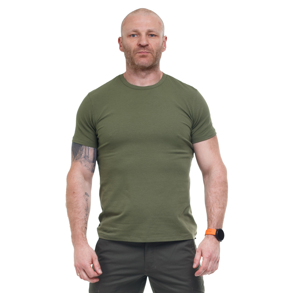 Мужская тактическая футболка олива Jersey Olive изготовлена из комбинации 95% натурального хлопка и 5% эластана, плотностью 200-210 г/м2. Изделие в меру свободного покроя, удобно садится по фигуре.