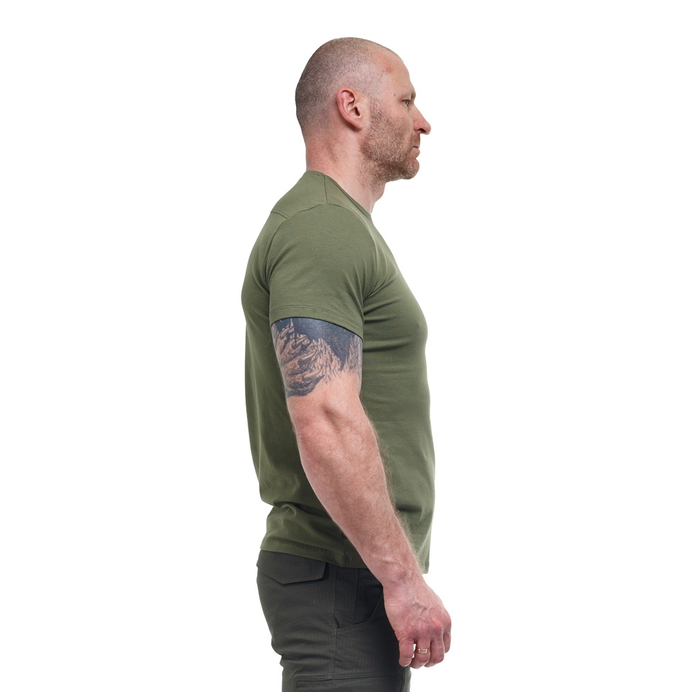 Мужская тактическая футболка олива Jersey Olive изготовлена из комбинации 95% натурального хлопка и 5% эластана, плотностью 200-210 г/м2. Изделие в меру свободного покроя, удобно садится по фигуре.