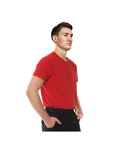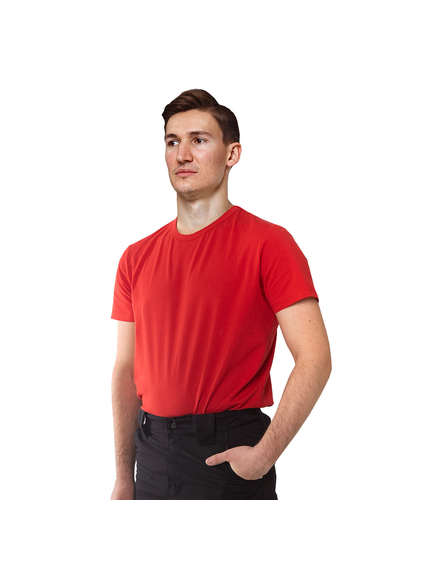 Красная футболка мужская Jersey Red изготовлена из комбинации 95% натурального хлопка и 5% эластана плотностью 200-210 г/м2. Изделие в меру свободного покроя, удобно садится по фигуре.
