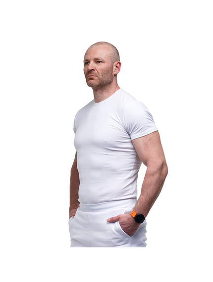Материал футболки Jersey White - комбинация 95% натурального хлопка и 5% эластана, плотностью 200-210 г/м2, дают удобную посадку по любой фигуре.
