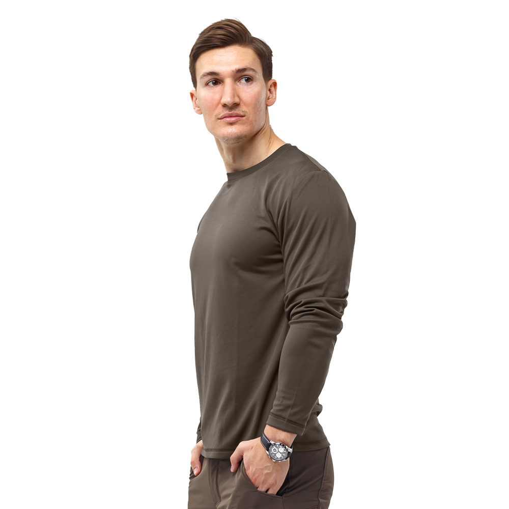 Базовая мужская футболка Long sleeve Striker Olive с длинными рукавами из дышащего эластичного материала, из полиэстеровых нитей объемного плетения, поэтому хорошо пропускает воздух. Лонгслив изготовлен из мягкого трикотажного материала 100% полиэстер. Ткань плотностью 150 г/м2.