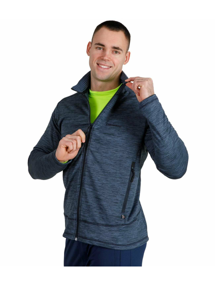 Флисовая кофта мужская синяя Ermine Navy - это кофта нового поколения. Кофта изготовлена из ткани Grid Fleece с сетчатой структурой, по внешнему виду напоминает поверхность вафли. Из-за чего и возникло народное название ткани "вафельный флис". В промежутках между волокнами ткани образуется дополнительный объем воздуха, что делает ткань дышащей и поддерживается микроклимат. Влага с кожи выводится во внешний слой, оставляя поверхность кожи сухой. Кофта не требовательна в уходе,  можно стирать в стиральной машинке, быстро высыхает. Ткань легкая, эластичная, обладает гипоаллергенными свойствами, что подтверждено международным сертификатом качества Oeko-Tex Standard 100. Все материалы соответствует стандарту качества BLUESIGN ®