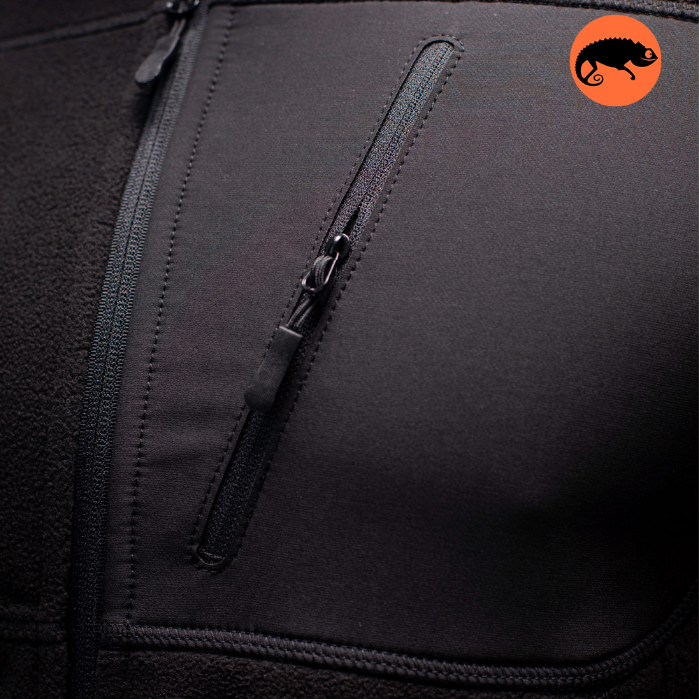 Демисезонная мужская кофта флисовая черная Stratus Black сшита из плотного флиса антипилинг Полар 100% 330 г/м2, рассчитанный на холодную погоду. При намокании сохраняет тепло и отлично дышит – в куртке не жарко даже при активном движении.