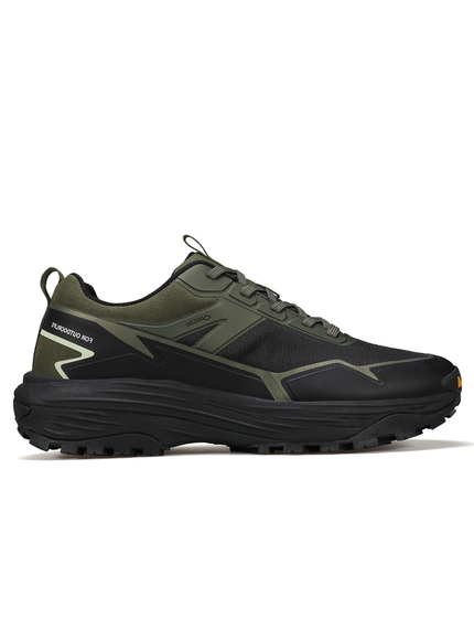 Подошва из EVA и резины с цепким зубчатым протектором обеспечивает амортизацию и сцепление на разных типах поверхности — от асфальта до грунтовки и троп.