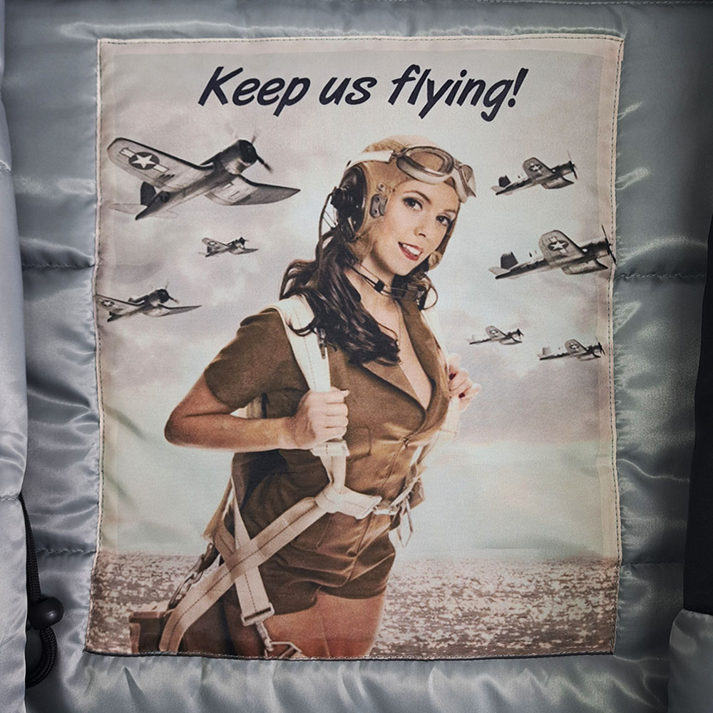 - Подкладка выполнена с винтажными принтами авиатехники.