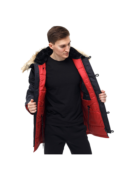 Куртка Аляска мужская Slim Fit N-3B Black - зимняя парка выше колен (зауженного кроя) с темно-красной подкладкой. Внешний слой выполнен из прочного 100% нейлона с водоотталкивающей пропиткой. Плотность ткани 150г/м2. Эта ткань хорошо защищает от холодного ветра и дождя.  Можно носить при температуре -15 С.