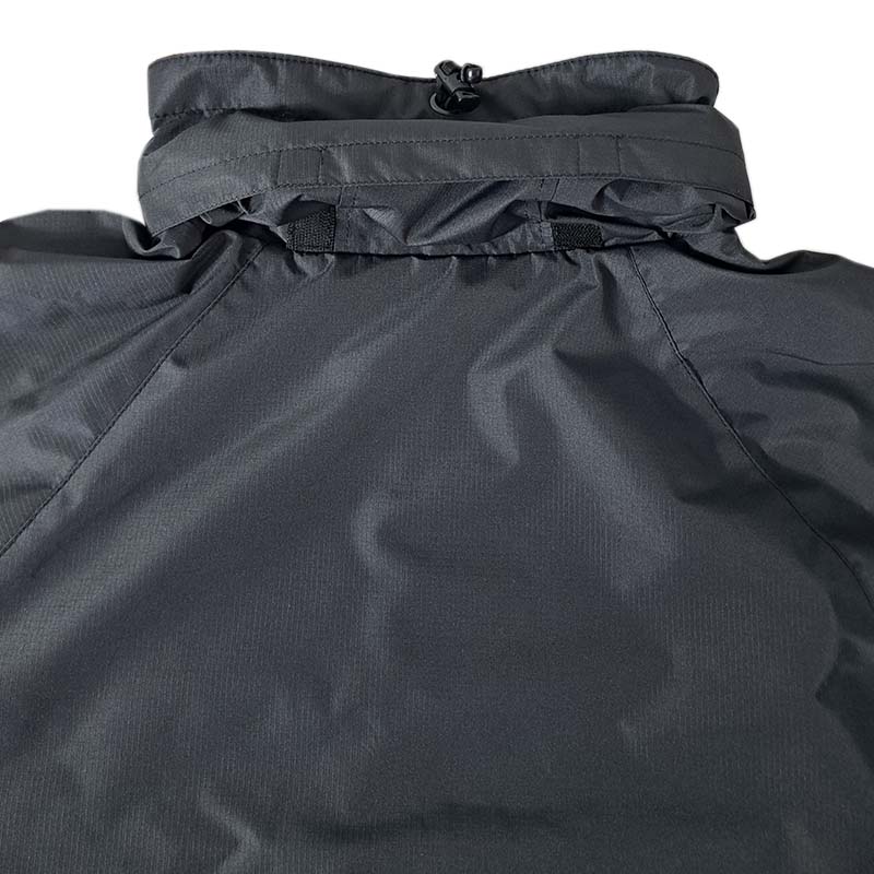 При необходимости капюшон можно запрятать в воротник и закрепить на велкро-липучке. Воротник сзади можно отрегулировать в объеме при помощи эластичного шнурка.