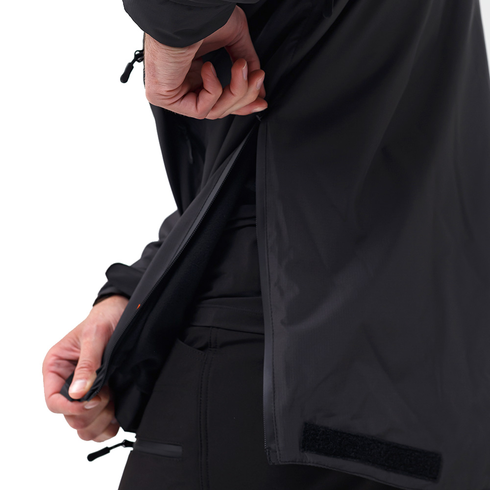 Анорак имеет два удобных функциональных вместительных боковых кармана и большой нагрудный карман. Все карманы на водонепроницаемых молниях и не позволит влаге попасть внутрь в дождливую погоду. Спереди воротник также застегивается на водонепроницаемую молнию. Застёжка на четверть изделия на молнии для удобной съемки и одевания куртки. Также водонепроницаемые молнии по бокам от низа и под мышками обеспечивают дополнительную вентиляцию. Они же помогает без особых усилий добраться до снаряжения под курткой.