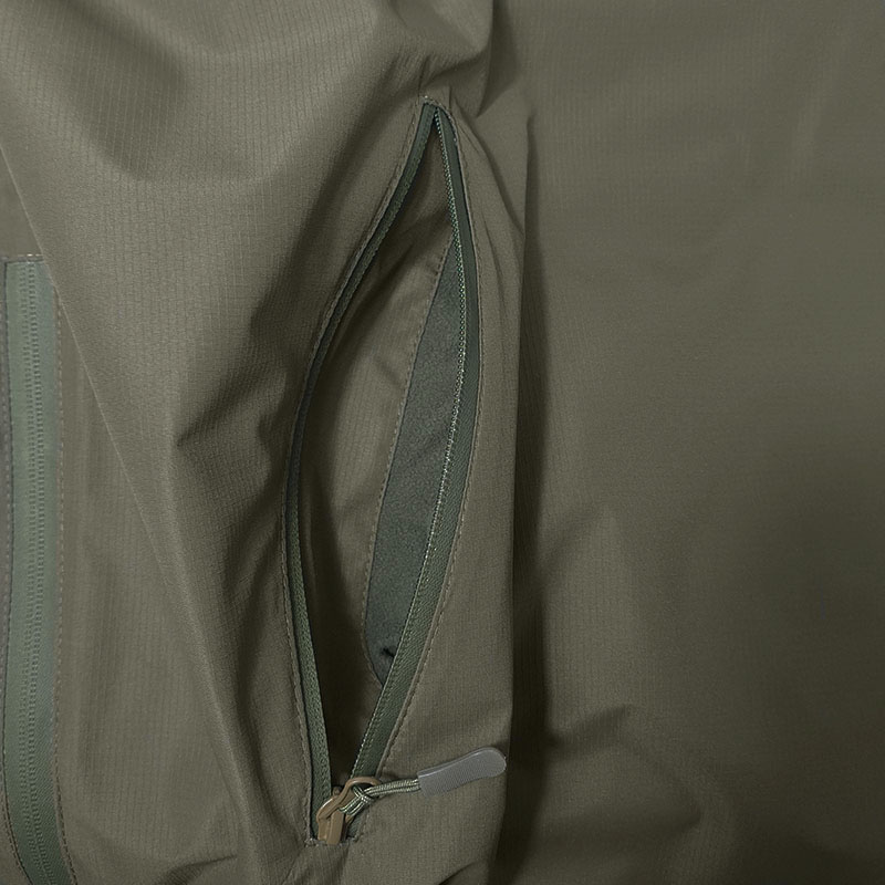 Анорак имеет два удобных функциональных вместительных боковых кармана и большой нагрудный карман. Все карманы на водонепроницаемых молниях и не позволит влаге попасть внутрь в дождливую погоду. Спереди воротник также застегивается на водонепроницаемую молнию. Застёжка на четверть изделия на молнии для удобной съемки и одевания куртки. Также водонепроницаемые молнии по бокам от низа и под мышками обеспечивают дополнительную вентиляцию. Они же помогает без особых усилий добраться до снаряжения под курткой.