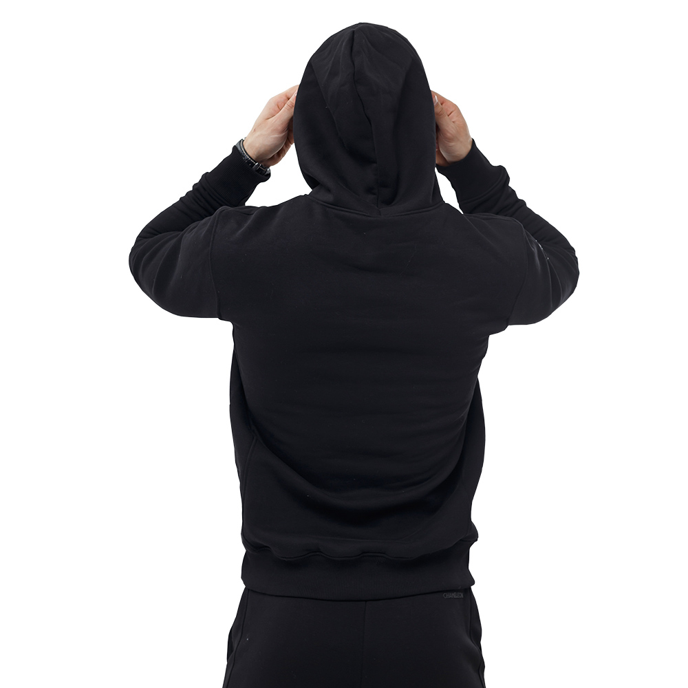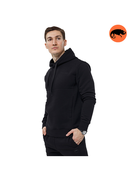 Преимуществом материала является легкость, износоустойчивость, быстрое испарение влаги, воздухопроницаемость, сохранение тепла и поддержание температурного баланса. Данное черное худи мужское не теряет форму, при активной носке не мнется, не требует сложного ухода (не нужна усиленная стирка и легкость при глажке).