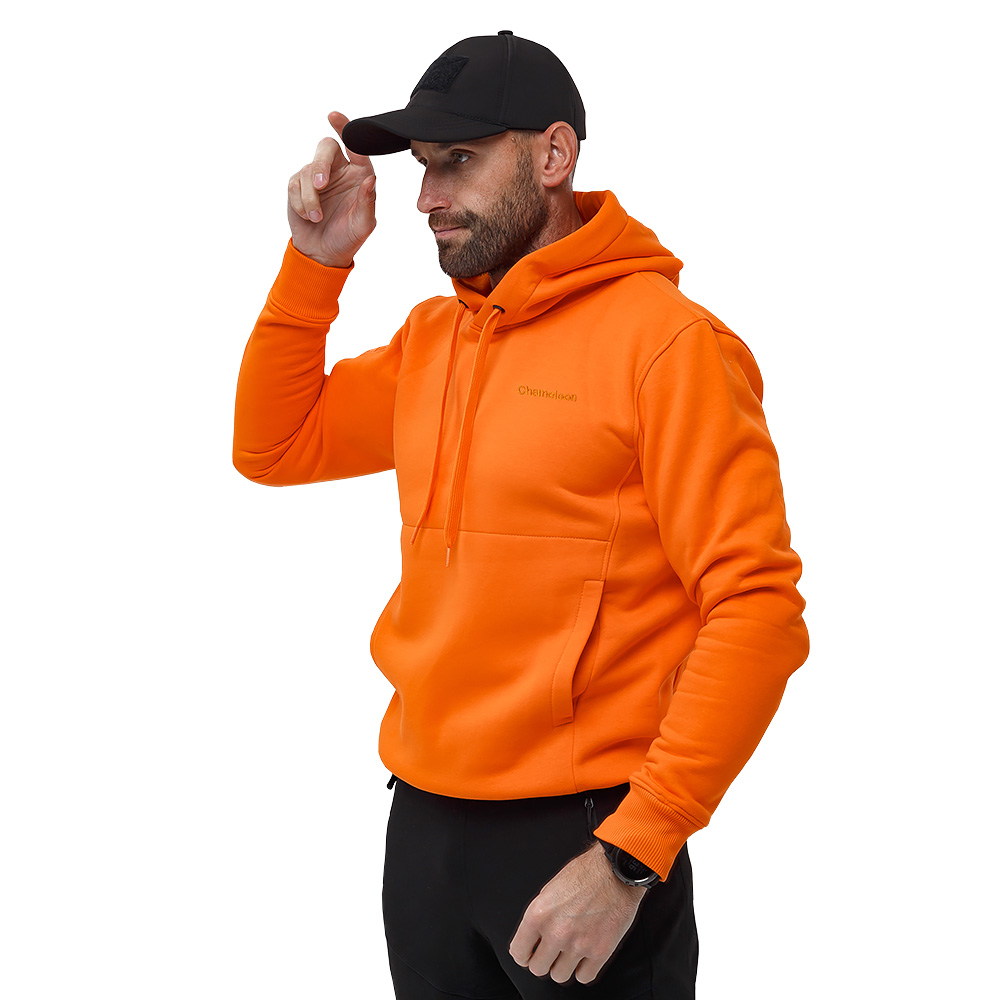 Оранжевый худи мужской Anorak warm Gen2 Orange с логотипом бренда Chameleon изготовлена из мягкого, приятного на ощупь качественного трикотажа с начесом (хлопок 80%, полиэстер 20%, плотностью 320 г/м2). Оранжевый худи мужской с капюшоном, который регулируется благодаря широкому шнурку. Спереди оранжевого худи расположен функциональный большой сквозной удобный карман.