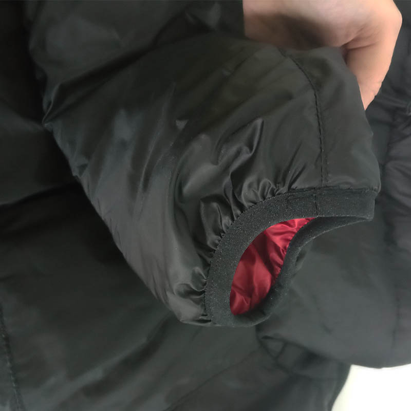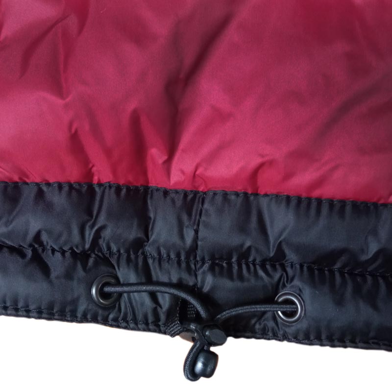 Куртка изготовлена из нейлона (nylon touch) 100 % плотностью 43 г/м2, подкладочной ткани нейлона 100 % плотностью 36 г/м2. Низ куртки, а также капюшон можно регулировать по объему при помощи шнурков. Плотные манжеты на резинке защитят от проникновения холода.