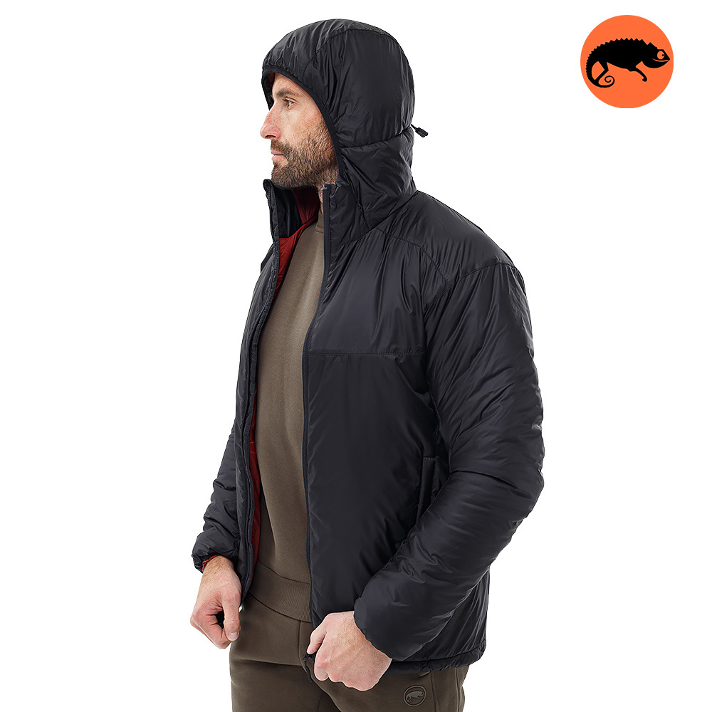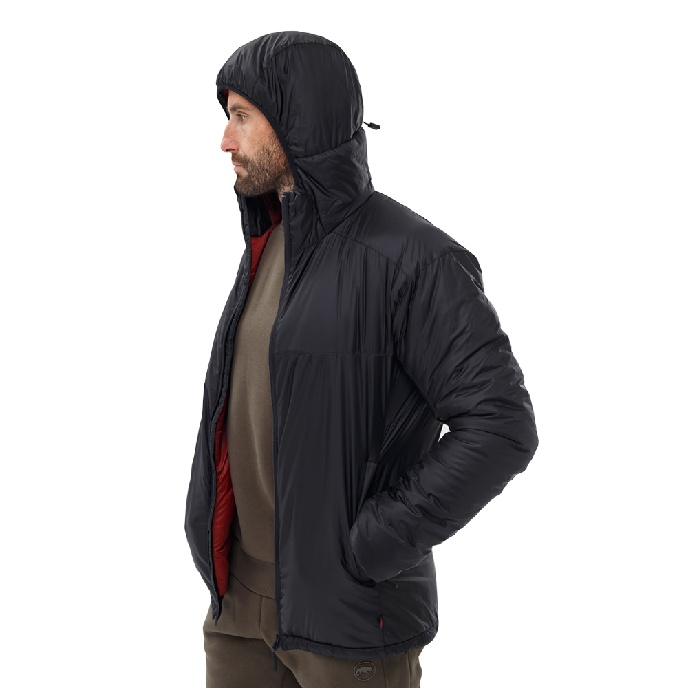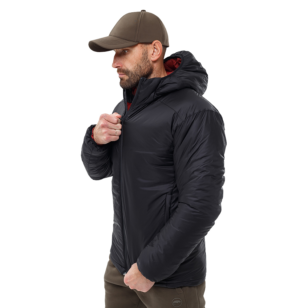 Мужская куртка черная Dufour Black для зимнего периода с центральной застежкой на молнии и яркой бордовой подкладкой. Изделие подойдет для ветренной погоды и моросящего дождя или мелкого снега. Температура комфорта до -15°C.