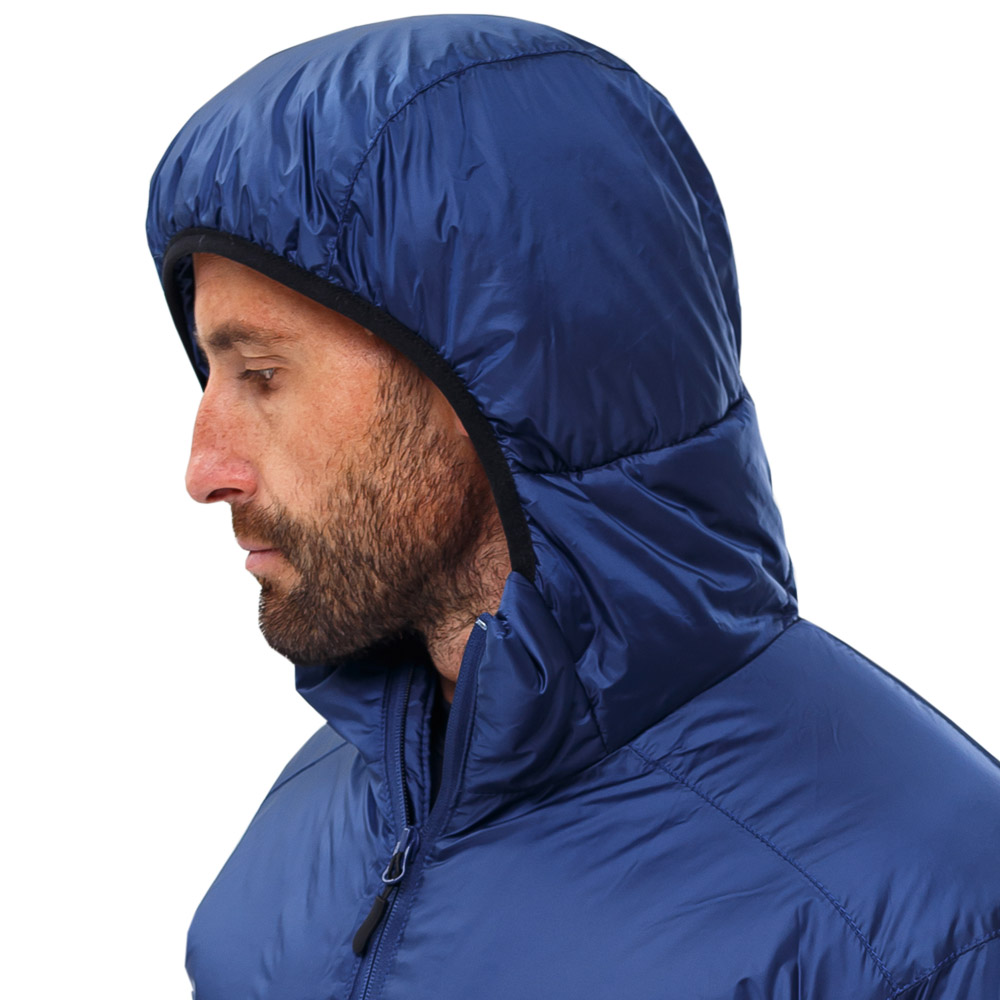 Куртка Dufour Indigo изготовлена из нейлона (nylon touch) 100 % плотностью 43 г/м2, подкладочной ткани нейлона 100 % плотностью 36 г/м2. Низ куртки, а также капюшон можно регулировать по объему при помощи шнурков. Плотные манжеты на резинке защитят от проникновения холода.