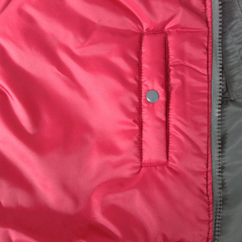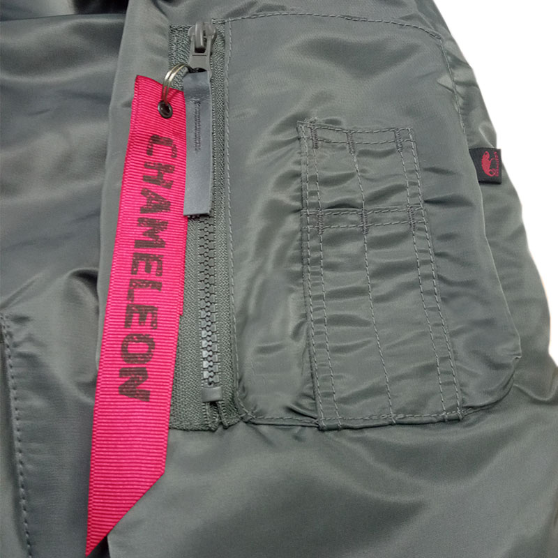 Внутри куртки MA-1 яркая подкладка из 100 % бордового полиэстера, плотность 70 г/м2. Такая подкладка была не только элементом дизайна, но и функциональной частью куртки и была создана для повышения видимости и быстрого нахождения пилотов в чрезвычайных ситуациях.