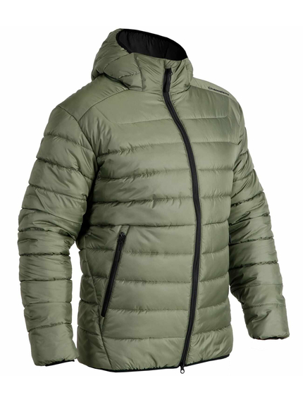 Мужская стеганая куртка с капюшоном Maximus Olive выполнена из легкого дышащего полиэстера с водоотталкивающей пропиткой, которая способна выдержать слабый дождь. Теплый капюшон с эластичным кантом и высокий воротник защищают от ветра и холода. Манжеты и низ изделия прошиты эластичным кантом, что предотвращает попадание холодного воздуха внутрь. Куртка имеет свободный крой, при этом хорошо сидит на фигуре. Можно носить при температуре -5 С. Утеплитель каландрированный искусственный лебяжий пух премиум класса, 100% полиэстер.
