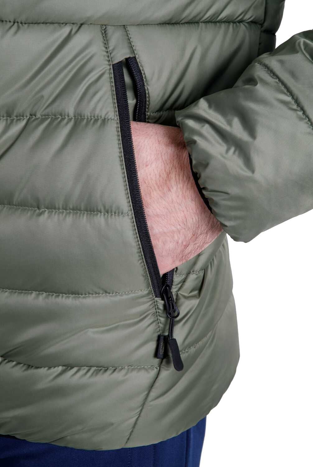 Мужская стеганая куртка с капюшоном Maximus Olive выполнена из легкого дышащего полиэстера с водоотталкивающей пропиткой, которая способна выдержать слабый дождь. Теплый капюшон с эластичным кантом и высокий воротник защищают от ветра и холода. Манжеты и низ изделия прошиты эластичным кантом, что предотвращает попадание холодного воздуха внутрь. Куртка имеет свободный крой, при этом хорошо сидит на фигуре. Можно носить при температуре -5 С. Утеплитель каландрированный искусственный лебяжий пух премиум класса, 100% полиэстер.