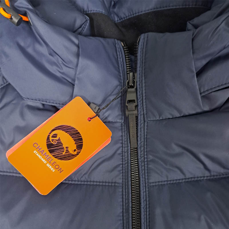 Изделие выполнено в спортивном стиле, отлично подойдет для повседневного использования. Куртка застегивается на центральную молнию с одним бегунком. Воротник стойка надежно защищает от холода. На левом рукаве флекстран с фирменным лого Chameleon / Standart Series. Капюшон пристегивается на молнии, объем регулируется на шнуровке. Куртка дополнена двумя боковыми карманами с застежками на молнии, а также есть 2 внутренних кармана с застежкой кнопкой. На рукавах для дополнительной защиты от проникновения холода предусмотрены манжеты из плотного мягкого трикотажа. Низ куртки можно регулировать по объему при помощи шнурков.