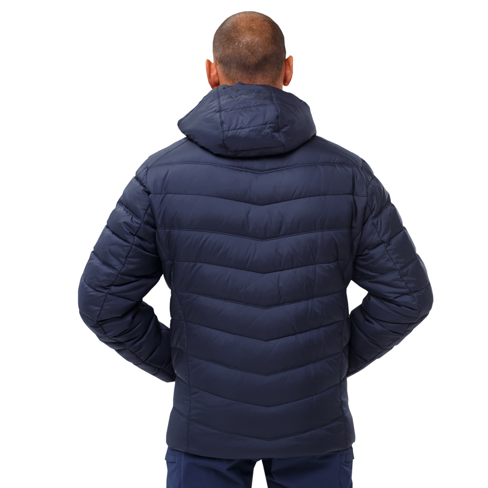 Стеганая синяя мужская куртка спортивная с капюшоном Proxima Navy с центральной застежкой на молнии, съемным капюшоном и утеплителем из биопуха. Изделие предназначено для зимнего и демисезонного периода. Верх куртки изготовлен из дышащего прочного 100% полиэстера, способного выдержать ветреную, дождливую и снежную погоду. Подкладка выполнена из 100% полиэстера. Утеплитель из биопуха обеспечивает комфортный микроклимат до -15°C. Биополимерное волокно биопух сочетает в себе преимущества свойств натурального пуха и синтетического материала. Волокна утеплителя, подобно натуральному пуху, образуют множество полостей с воздухом, обеспечивая превосходные термосберегающие характеристики.