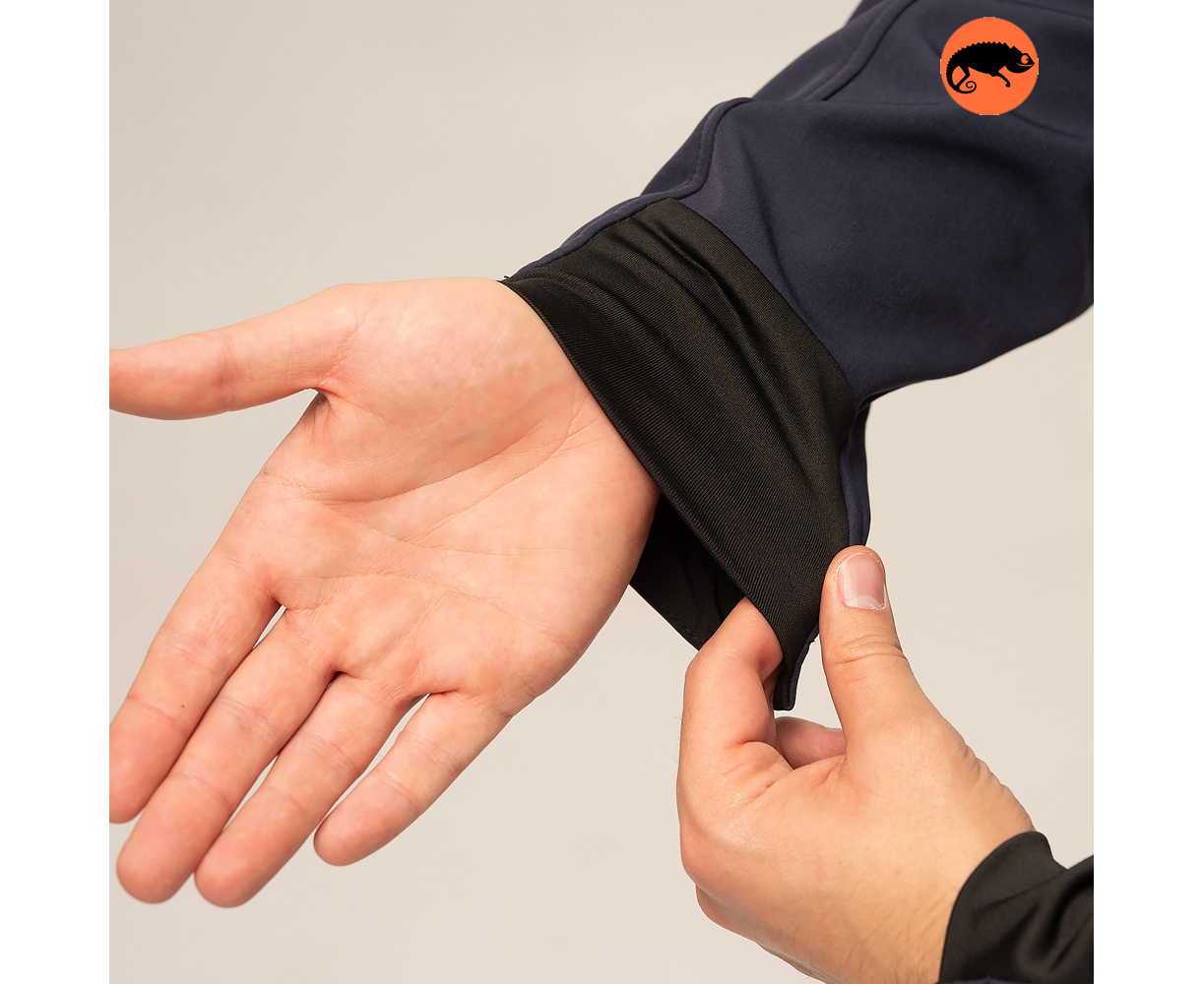 Куртка выполнена из современного материала 100D 4-way Stretching Composite Fleece — по свойствам аналогичного софтшеллу: эластичного, ветрозащитного и с внутренним слоем из микрофлиса, который обеспечивает комфорт и тепло при активном движении.