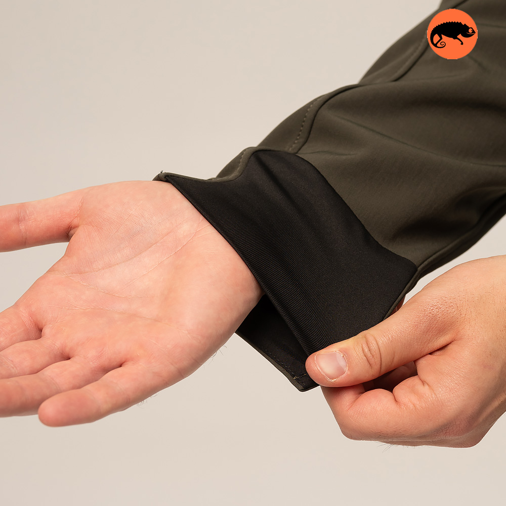 Куртка выполнена из современного материала 100D 4-way Stretching Composite Fleece — по свойствам аналогичного софтшеллу: эластичного, ветрозащитного и с внутренним слоем из микрофлиса, который обеспечивает комфорт и тепло при активном движении.
