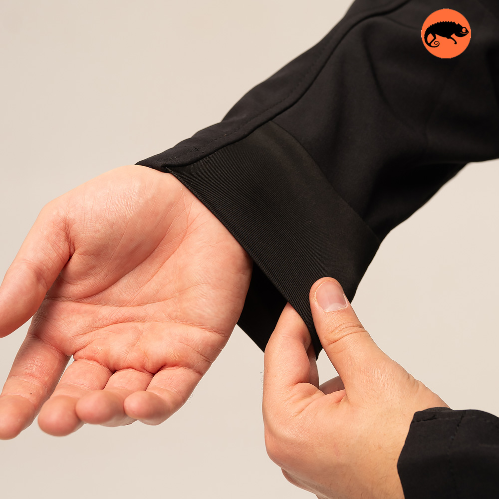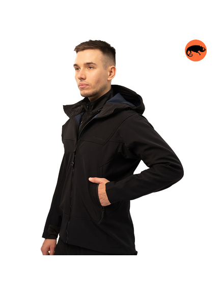 Куртка выполнена из современного материала 100D 4-way Stretching Composite Fleece — по свойствам аналогичного софтшеллу: эластичного, ветрозащитного и с внутренним слоем из микрофлиса, который обеспечивает комфорт и тепло при активном движении.