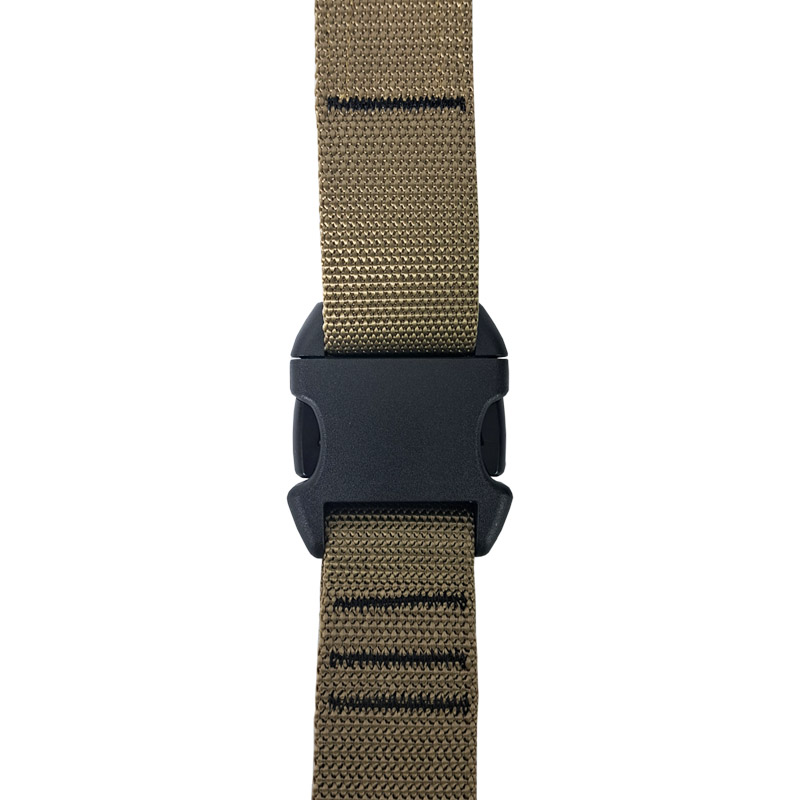 Ремень фиксируется на поясе при помощи прочной пряжки фастекса из ацетала и способен выдержать номинальную статичную нагрузку до 100 кгс. Производитель пряжки Woojin Plastic (WJ). Материал устойчив к действиям масел, растворителей и жиров, выдерживает температуры: от -40°C до +80°C; температура плавления 166 °C.