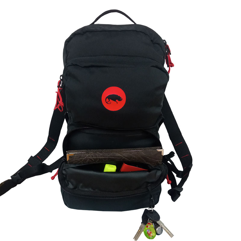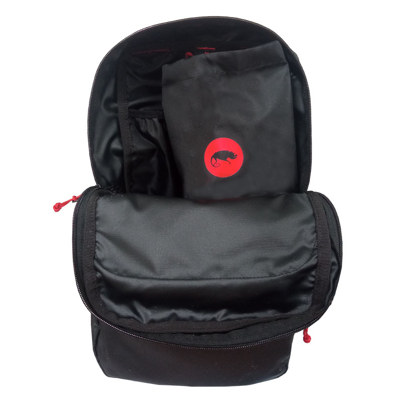 Рюкзак имеет 3 отделения горизонтальной загрузки. В большом основном отделении есть вместительный карман. Также предусмотрен чехол, чтобы складывать в него рюкзак. В рюкзаке есть отверстие из прорезиненного материала хайполон для вывода гидратора (питьевая система). С помощью такой системы вы сможете пить воду не используя руки и не замедляя темп движения. Для фиксации гидротрубки в отделении предусмотрена петля с велкро-липучкой. Среднее отделение декорировано логотипом Chameleon предусмотрено для разных мелких вещей. Наружное отделение для размещения мелких вещей, где можно размещать канцелярию, ключи и прочее. Отделения закрываются прочными застежками молниями. Бегунки на молниях оснащены хлястиками из паракорда, что придает удобство пользования даже в перчатках.