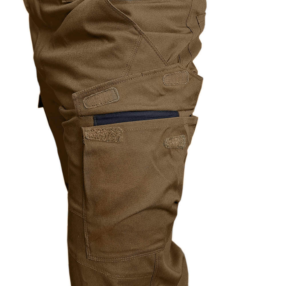 Мужские тактические брюки Defender Сoyote пошиты из надежной прочной ткани канвас Brush stretch - сбалансированного сочетания натуральной и синтетических нитей (65% полиэстер, 32% хлопок, 3% эластан). Ткань с высокой плотностью плотностью 280 г/м2, но достаточно мягкая, комфортная и приятная к телу. Очень прочная ткань имеет структуру полотна, износостойкая, воздухопроницаемая, с водоотталкивающей пропиткой. Эффект «Brush» - ткань со специальной обработкой, придает материалу мягкости, комфорт в использовании изделия. Материал хорошо защищает от ветра, песка и капель воды, быстро сохнет, не мнётся, хорошо держит форму, не впитывает грязь. Ткань имеет устойчивость к выгоранию, нет усадки после стирки, не теряет цвет.