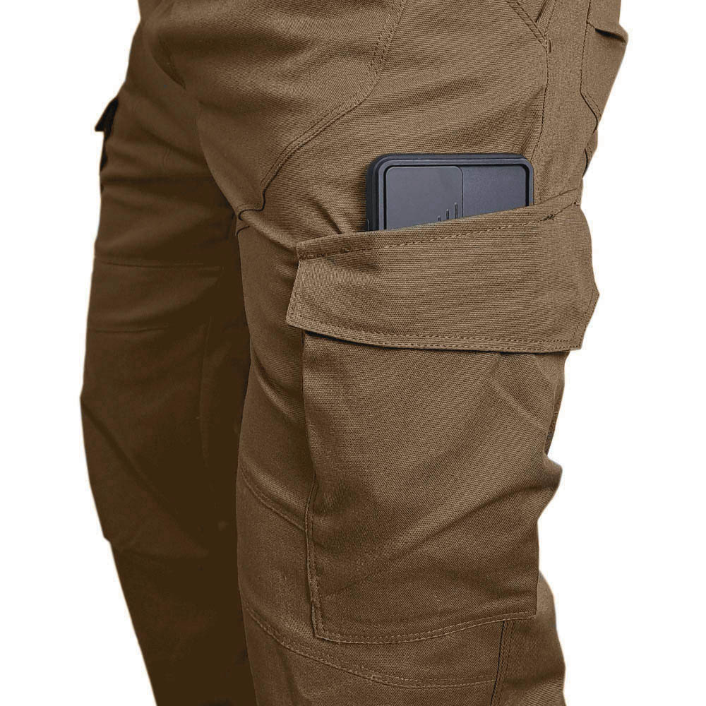 Удобно расположенные карманы (2 кармана спереди, 2 боковых, 1 карман для смартфона внутри бокового кармана, 2 кармана сзади) позволяют удобно разместить предметы различного назначения. Боковые карго-карманы закрываются на липучку, 1 карман сзади также с застежкой на липучке.