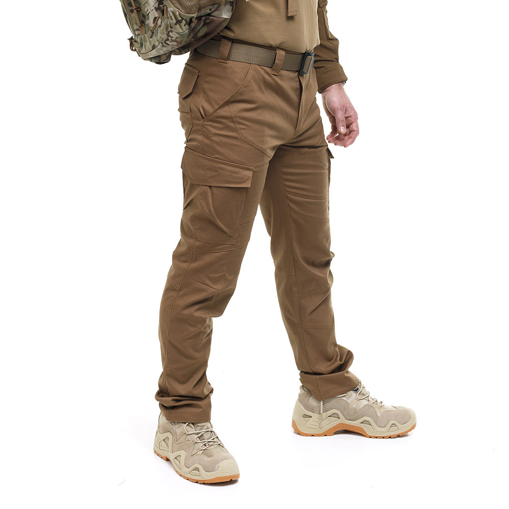 Мужские тактические брюки Defender Сoyote пошиты из надежной прочной ткани канвас Brush stretch - сбалансированного сочетания натуральной и синтетических нитей (65% полиэстер, 32% хлопок, 3% эластан). Ткань с высокой плотностью плотностью 280 г/м2, но достаточно мягкая, комфортная и приятная к телу. Очень прочная ткань имеет структуру полотна, износостойкая, воздухопроницаемая, с водоотталкивающей пропиткой. Эффект «Brush» - ткань со специальной обработкой, придает материалу мягкости, комфорт в использовании изделия. Материал хорошо защищает от ветра, песка и капель воды, быстро сохнет, не мнётся, хорошо держит форму, не впитывает грязь. Ткань имеет устойчивость к выгоранию, нет усадки после стирки, не теряет цвет.