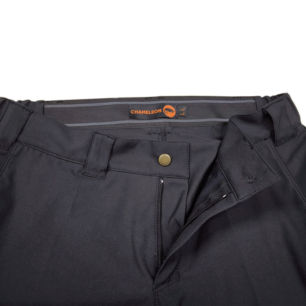 Брюки средней посадки, застегиваются на пуговицу, гульфик на молнии. Широкие шлевки под тактический ремень. Корсажная лента с латексными вставками вшита в пояс для придания изделию дополнительной прочности, предотвращает скольжение, чтобы заправленная в брюки рубашка не выбивалась наружу.