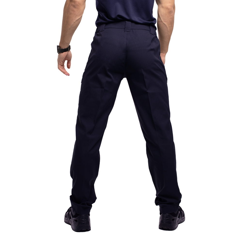 Брюки средней посадки, застегиваются на пуговицу, гульфик на молнии. Широкие шлевки под тактический ремень. Корсажная лента с латексными вставками вшита в пояс для придания изделию дополнительной прочности, предотвращает скольжение, чтобы заправленная в брюки рубашка не выбивалась наружу.