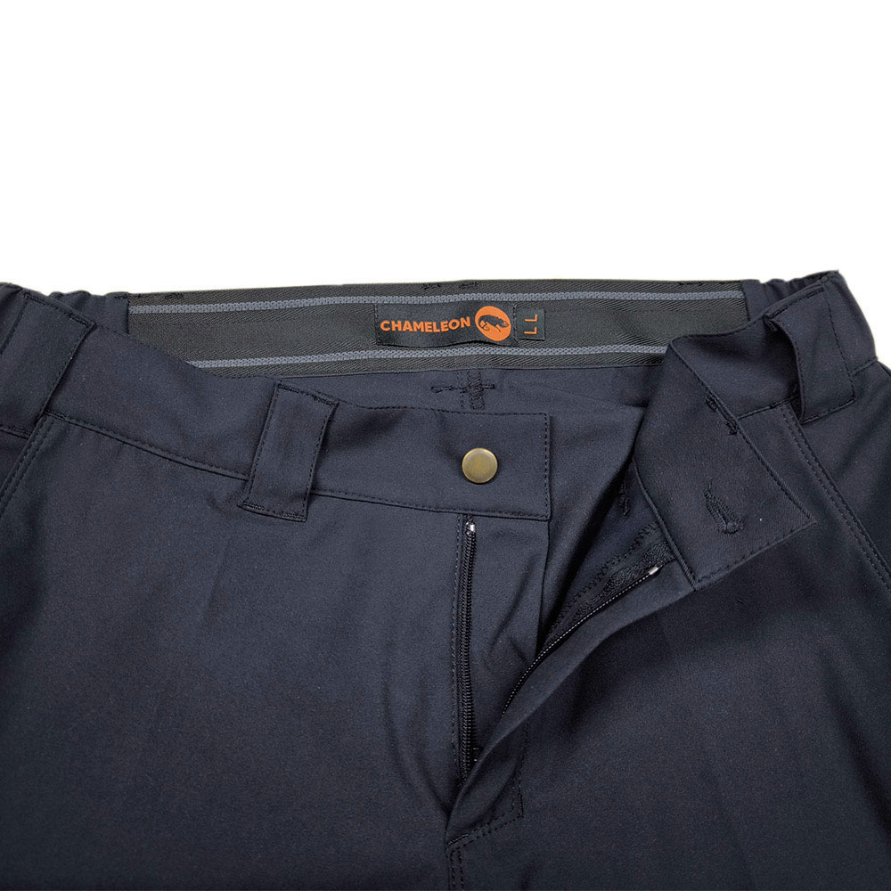 Брюки средней посадки, застегиваются на пуговицу, гульфик на молнии. Широкие шлевки под тактический ремень. Корсажная лента с латексными вставками вшита в пояс для придания изделию дополнительной прочности, предотвращает скольжение, чтобы заправленная в брюки рубашка не выбивалась наружу.