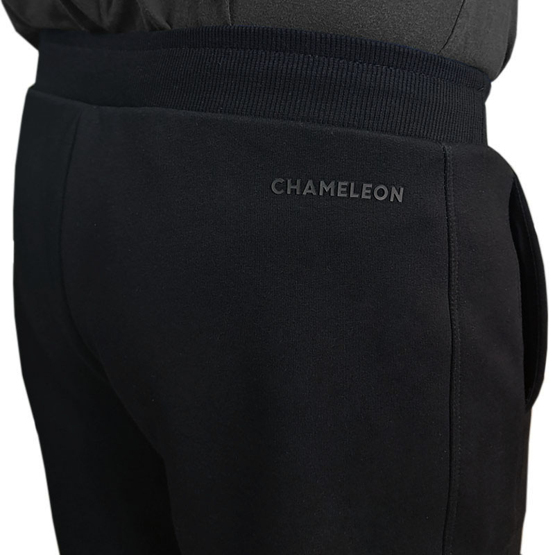 Штаны в поясе на резинке, дополнительно можно завязать на внутренних шнурках, подогнав под фигуру. Удобные боковые карманы пригодятся для различных мелочей. Эластичные манжеты низа штанов обеспечивают плотную посадку. Фирменный логотип Chameleon дополняет дизайн спортивных штанов, а также указывает на принадлежность модели к бренду.