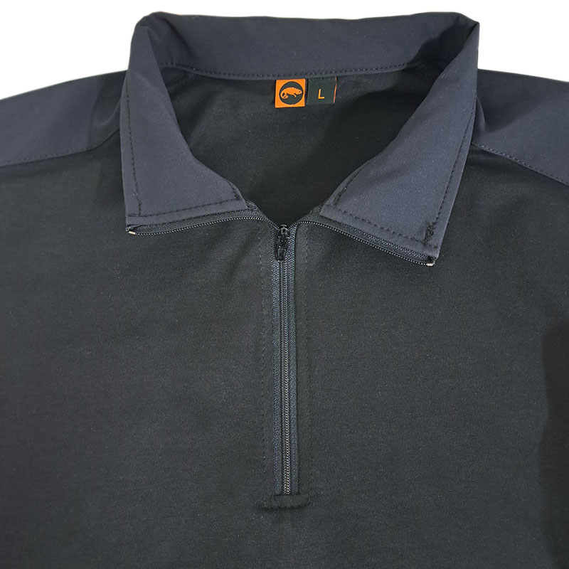 Воротник рубашки стойка, чтобы шея не натиралась разгрузочной системой или бронежилетом. Застегивается рубашка на короткую молнию под горло.