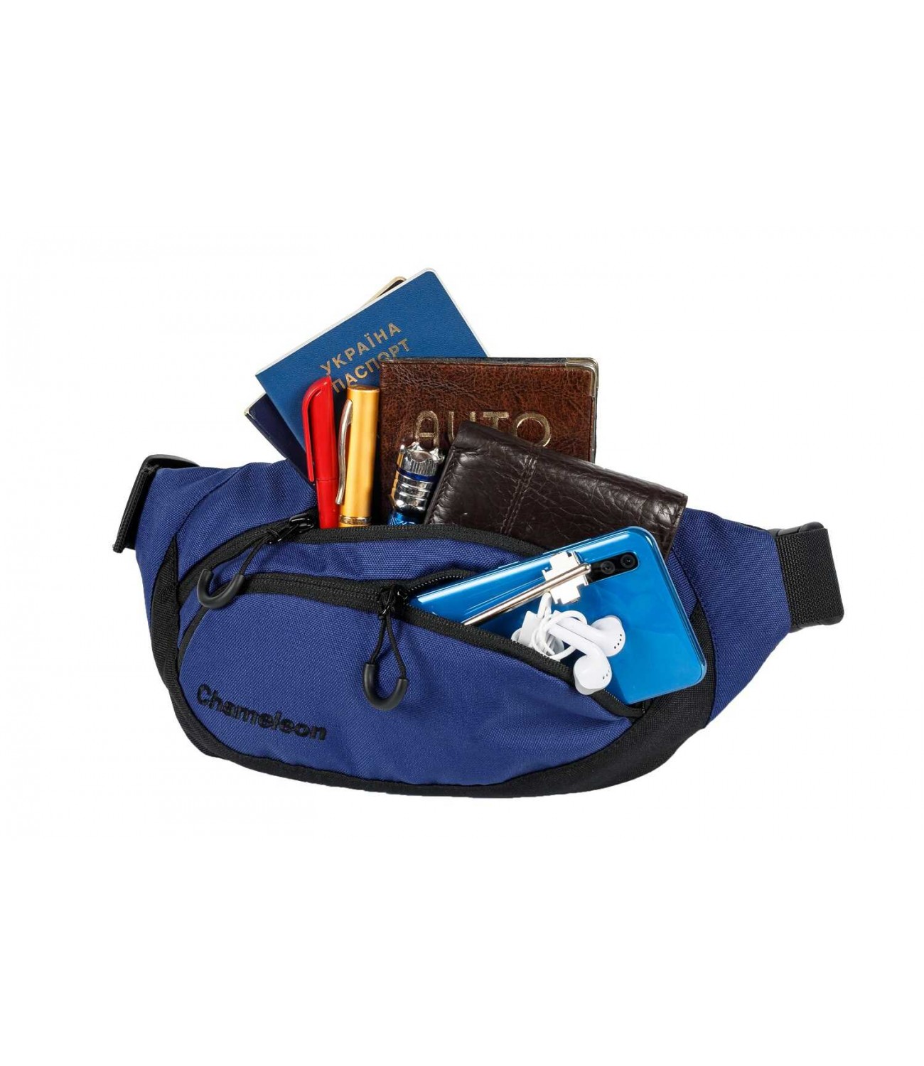 Поясная сумка Hip Bag Navy на каждый день из ткани Oxford 600PU. Материал прочный, хорошо держит форму, не истирается и не выгорает на солнце. Не промокает даже под сильным дождем и снегом, а после стирки быстро высыхает. Это наиболее подходящая ткань для поясной сумки, которую вы сможете носить каждый день при любой погоде. Надевайте ее на пояс или перекиньте через плечо. Сумка-бананка удобнее наплечной сумки, компактнее, чем рюкзак, и надежнее карманов.