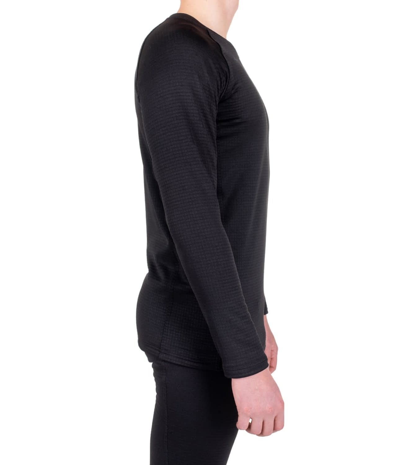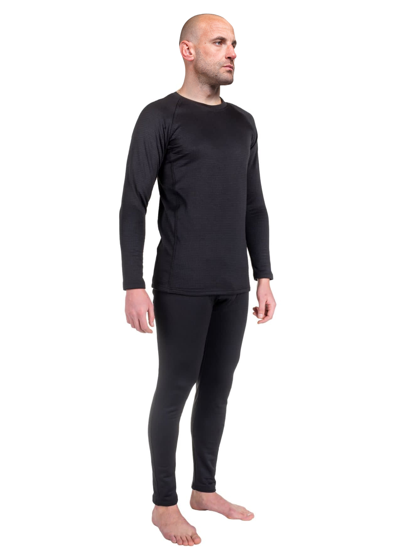 Термобелье комплект Active Black изготовлено из ткани флис рип-стоп плотностью 275 г/м2. Комплект термобелья аналог второго слоя армии США. Данный вид трикотажа обладает решётчатой конструкцией, что улучшает терморегуляцию, удержание тепла и воздухопроницаемость. Также это позволяет значительно снизить вес ткани, что делает ежедневное ношение изделия комфортнее.