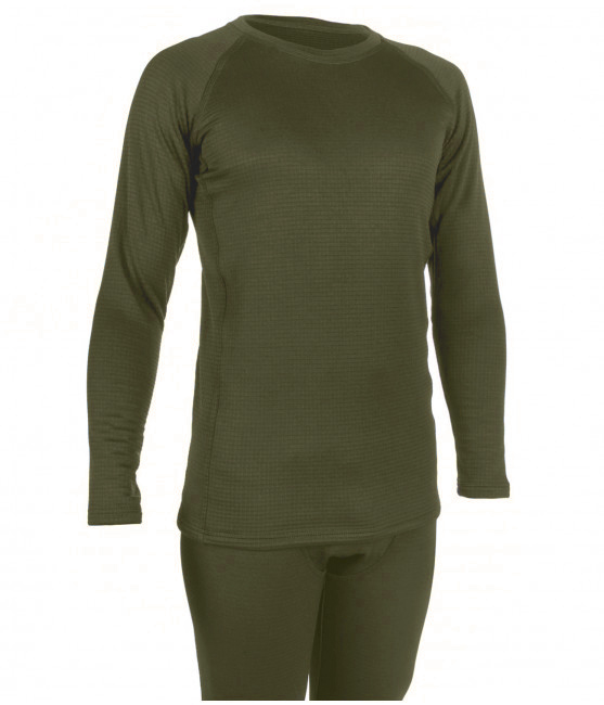 Термобелье комплект Active Khaki изготовлено из ткани флис рип-стоп плотностью 275 г/м2. Комплект термобелья аналог второго слоя армии США. Данный вид трикотажа обладает решётчатой конструкцией, что улучшает терморегуляцию, удержание тепла и воздухопроницаемость. Также это позволяет значительно снизить вес ткани, что делает ежедневное ношение изделия комфортнее.