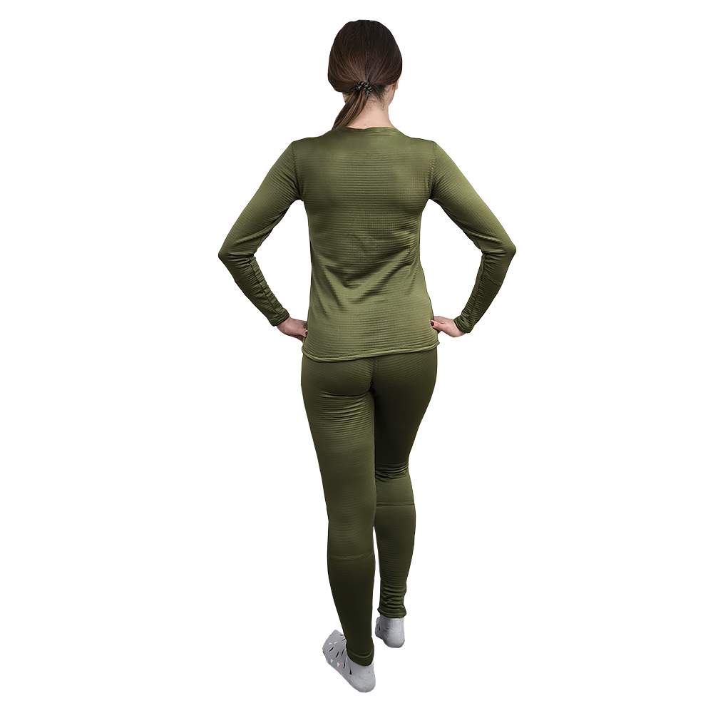Женское термобелье комплект Active Khaki изготовлено из ткани флис рип-стоп плотностью 270 г/м2. Комплект термобелья аналог второго слоя армии США. Данный вид трикотажа обладает решётчатой конструкцией, что улучшает терморегуляцию, удержание тепла и воздухопроницаемость. Мягкий, приятный на ощупь внутренний слой отводит влагу от тела и дает Вам ощущение "второй кожи", контролируя температуру между Вашим телом и одеждой. Также это позволяет значительно снизить вес ткани, что делает ежедневное ношение изделия комфортнее.