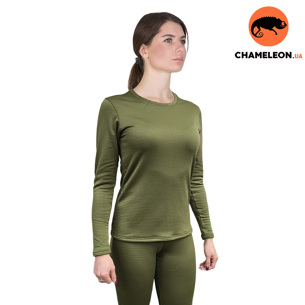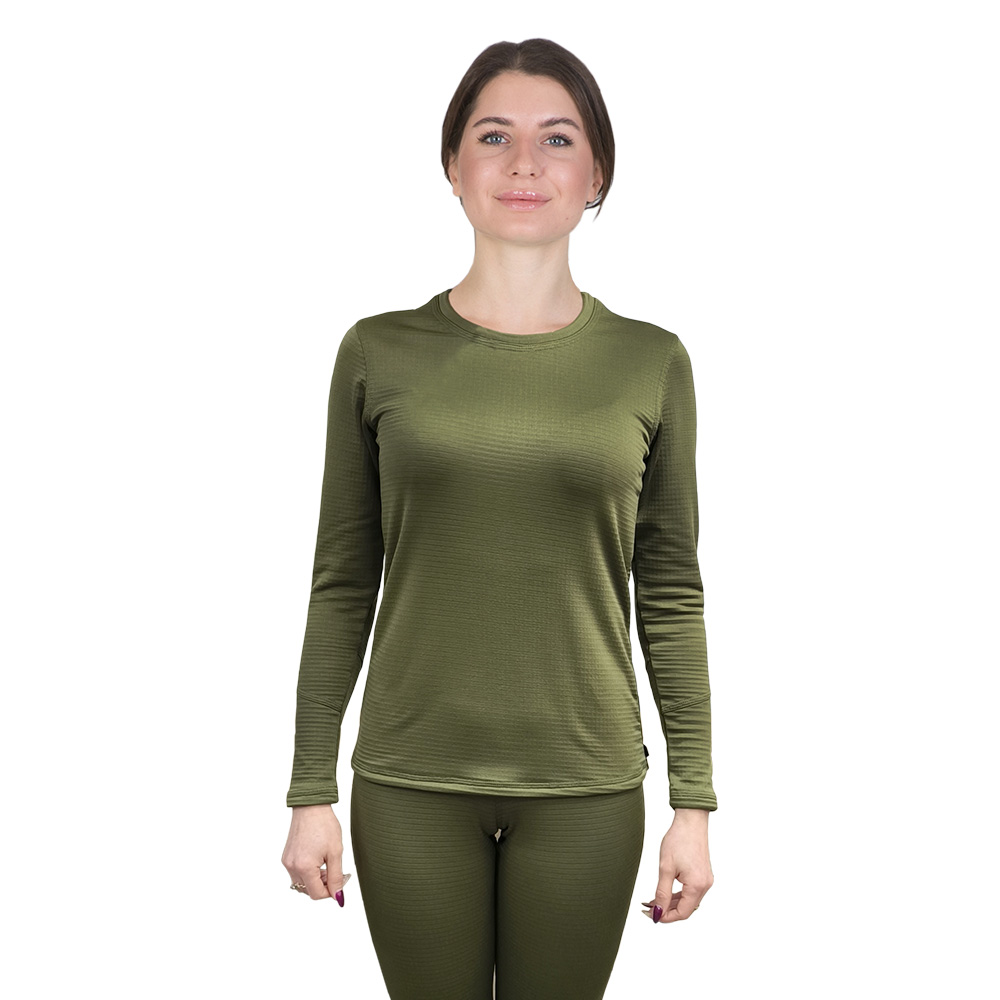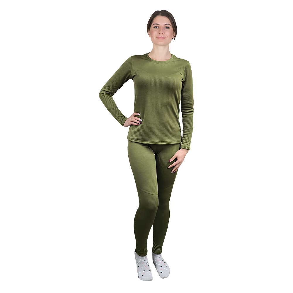 Женское термобелье комплект Active Khaki изготовлено из ткани флис рип-стоп плотностью 270 г/м2. Комплект термобелья аналог второго слоя армии США. Данный вид трикотажа обладает решётчатой конструкцией, что улучшает терморегуляцию, удержание тепла и воздухопроницаемость. Мягкий, приятный на ощупь внутренний слой отводит влагу от тела и дает Вам ощущение "второй кожи", контролируя температуру между Вашим телом и одеждой. Также это позволяет значительно снизить вес ткани, что делает ежедневное ношение изделия комфортнее.