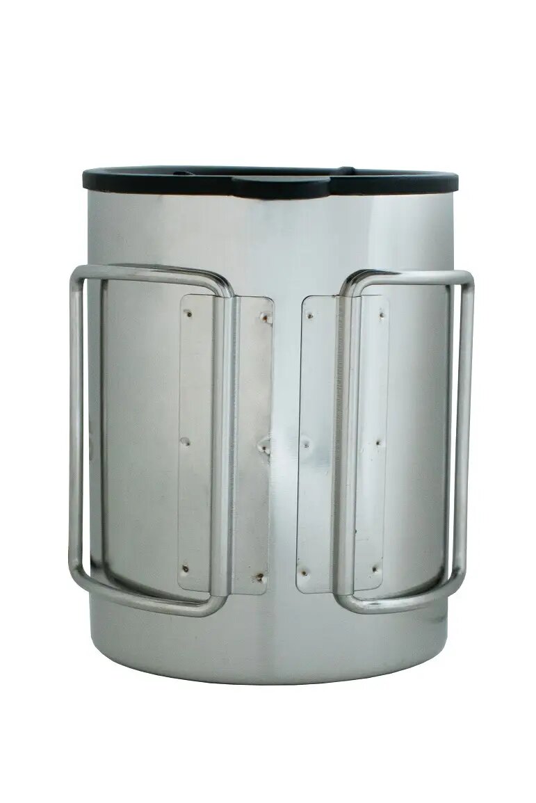Термокружка с удобными складными ручками 400 мл занимает минимум места в рюкзаке.