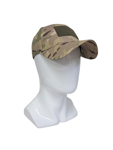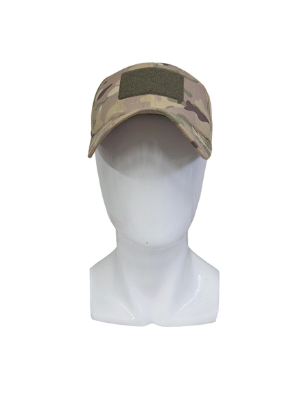 Бейсболка тактична Multicam з велкро-патчем на лобі, маківці та на потилиці для розпізнавальних знаків. У виробі є отвори для вентиляції по всьому периметру. Бейсболка регулюється ззаду на липучці. Матеріал ріп-стоп (65 % бавовна і 35 % поліестер, щільність тканини 230 г/м2) з дихаючими властивостями, досить міцний і стійкий до стирання і розривів, вологовідштовхувальний, вітрозахисний.