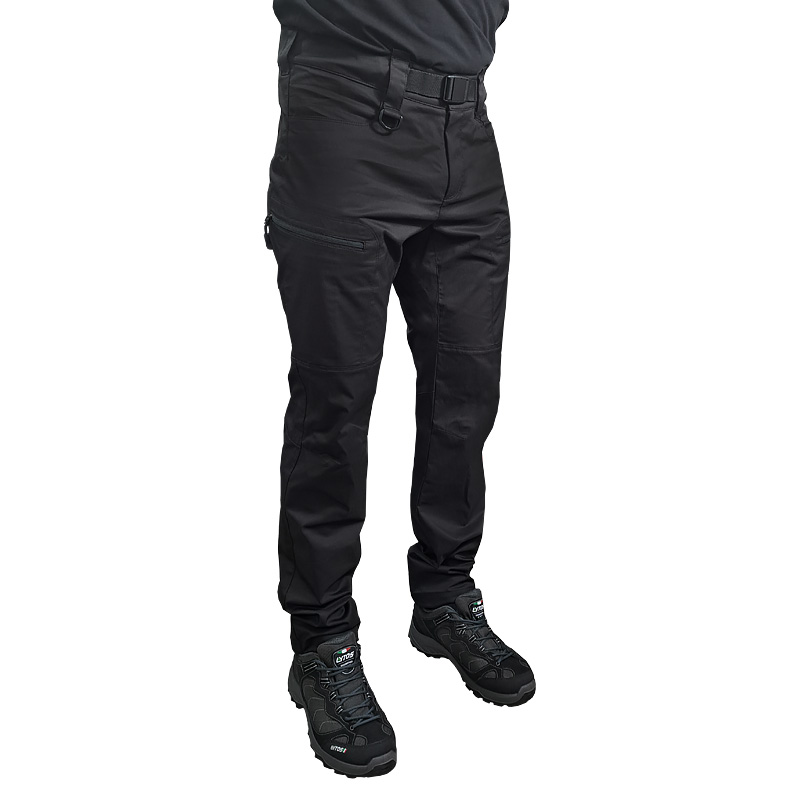 Брюки з регульованим вшитим ременем, з широкими шлевками під армійський ремінь. Відмінною особливістю виробу є наявність петельок для підтяжок. Гульфик застібається на блискавку і на акуратну, міцну потаємну кнопку. Також передбачено карабін півкільце LD-E YKK для кріплення ключів або іншого спорядження.