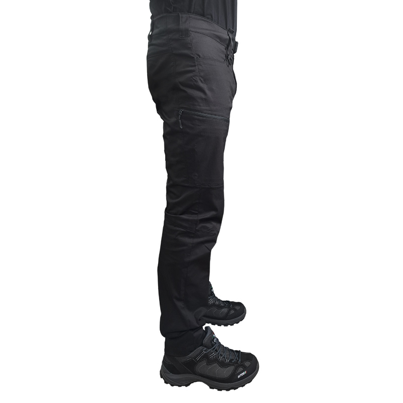 Брюки з регульованим вшитим ременем, з широкими шлевками під армійський ремінь. Відмінною особливістю виробу є наявність петельок для підтяжок. Гульфик застібається на блискавку і на акуратну, міцну потаємну кнопку. Також передбачено карабін півкільце LD-E YKK для кріплення ключів або іншого спорядження.